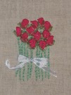 Kukkakortteja, silkkinauhakirjonta pellavakankaalle, kortin koko 15x10