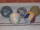 Styrox-munat päällystetty kankaalla, koristenauhalla ja helmillä